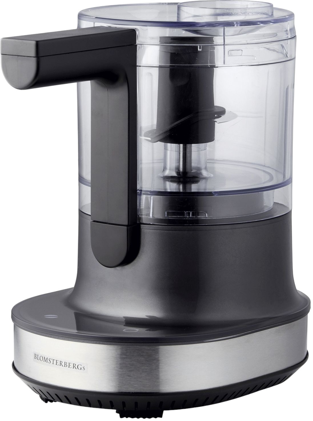 Med sit stilfulde grå og sorte design passer Blomsterbergs multihakker elegant ind i ethvert køkken, mens den praktiske størrelse gør den nem at opbevare. Når madlavningen er overstået, er oprydningen minimal, da både kniv, låg og skål kan komme direkte i opvaskemaskinen.