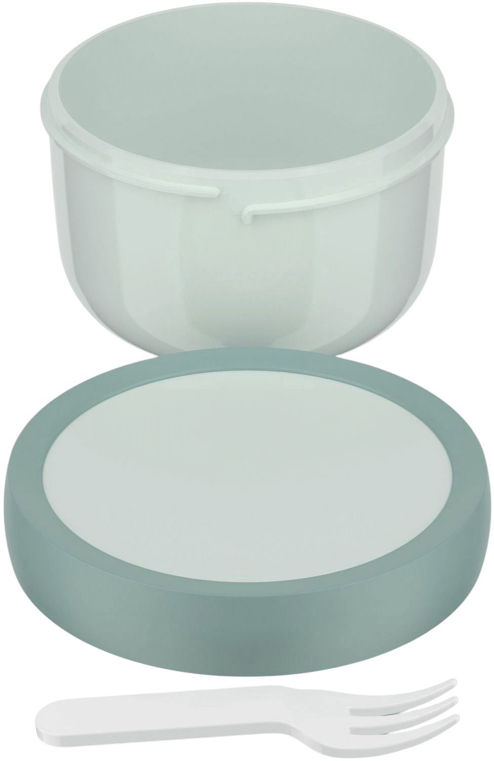 Mepal Campus frugtboksen i Cool Mint bringer praktisk funktionalitet og stilfuldt design til børnenes madpakke. Den kompakte 300 ml boks er designet med børnenes behov i fokus og gør det nemt for dem at pakke og nyde deres yndlingsfrugter og snacks. Den runde form og det friske Cool Mint-farvetone skaber en moderne og indbydende oplevelse, der appellerer til både børn og forældre.Boksen er udstyret med en praktisk gaffel, som gør det enkelt for børnene at spise deres mad, uanset om det er skåret frugt, grøntsager eller andre lækre snacks. Det tætte låg sikrer, at indholdet forbliver friskt og forhindrer spild i tasken - en vigtig detalje for travle morgener og aktive børn.