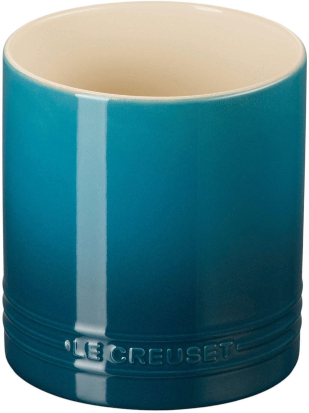Den smukke Deep Teal-farve tilføjer et sofistikeret touch til køkkenet og passer perfekt ind i både moderne og klassiske indretningsstile. Le Creusets berømte emalje-finish gør overfladen ridsefast og helt hygiejnisk, så krukken ikke absorberer lugt eller smag fra opbevarede redskaber.