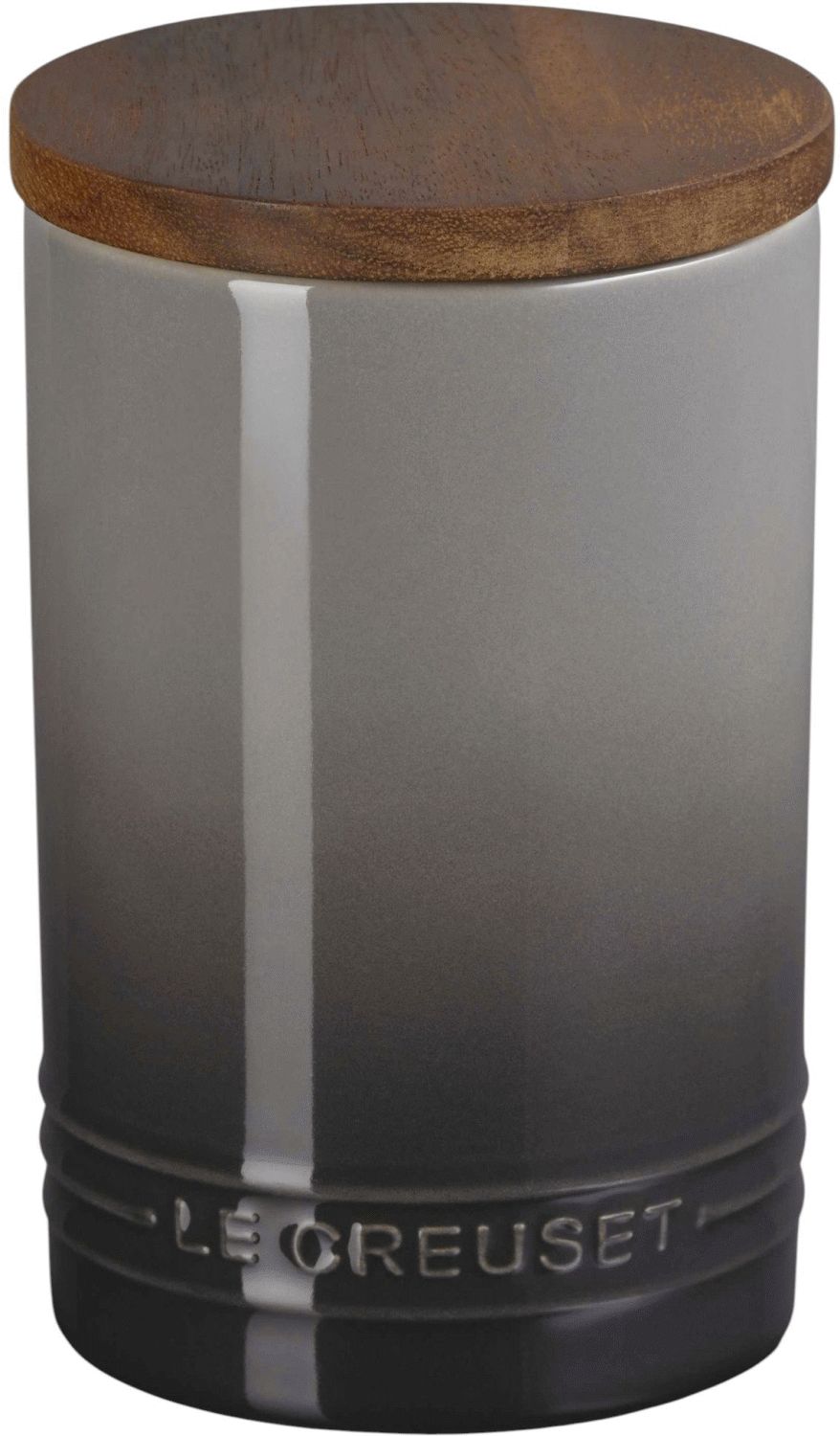 Le Creuset Signature Opbevaringskrukke kombinerer funktionel opbevaring med ikonisk design, der tilfører karakter til ethvert køkken. Denne elegante krukke i Flint-farven er fremstillet i Le Creusets karakteristiske stentøj og leveres med et naturligt låg i akacietræ, som skaber en harmonisk kontrast mellem det emaljerede stentøj og det varme træ.Krukken er designet til at holde dine ingredienser friske og velbeskyttede. En integreret silikoneforsegling i låget sikrer en lufttæt lukning, så indholdet bevarer sin kvalitet og friskhed over længere tid. Med en kapacitet på 770 ml er den ideel til opbevaring af alt fra mel, sukker og kaffe til te, korn og andre tørre ingredienser.