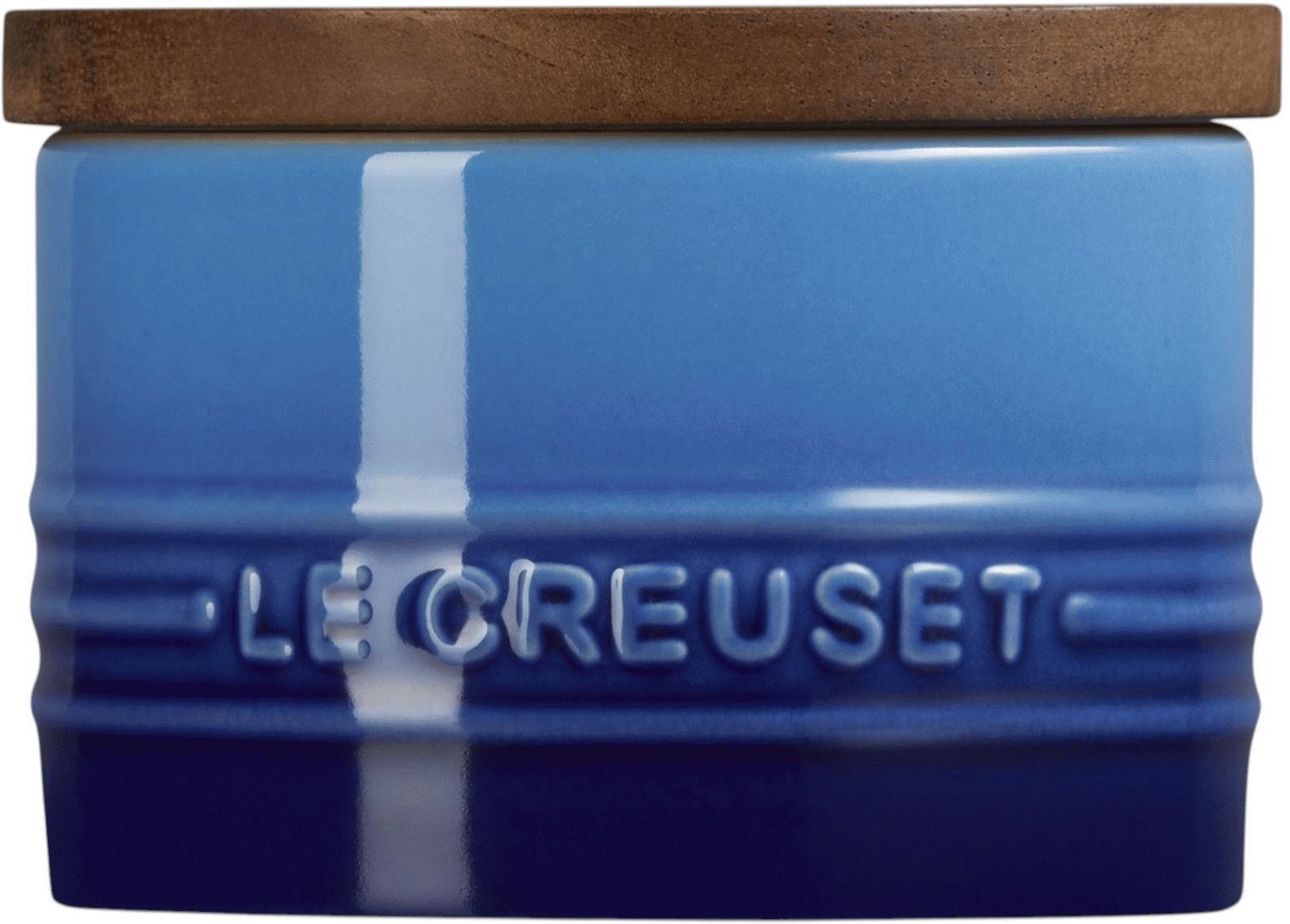Le Creuset Signature opbevaringskrukken i den smukke Azure-farve kombinerer funktionel opbevaring med ikonisk fransk design. Med en højde på 7,5 cm og en kapacitet på 200 ml er denne krukke ideel til at opbevare ingredienser som salt, krydderier, te eller kaffe, mens den samtidig tilfører et elegant farveaccent til dine køkkenhylder.Krukken er fremstillet af Le Creusets karakteristiske stentøj, der produceres af udvalgte lertyper og brændes ved ekstremt høje temperaturer. Denne fremstillingsmetode sikrer en stærk og holdbar konstruktion, der kan modstå daglig brug. Den glaserede overflade er let at rengøre og modstår ridser, så krukken bevarer sit flotte udseende år efter år.