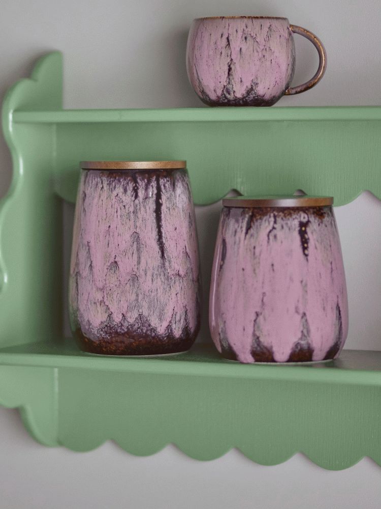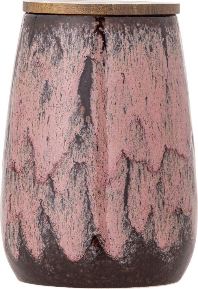 Rayen Krukke m/låg fra Creative Collection er en krukke i stentøj med reaktiv glasur i varierende rosatoner og fine detaljer som mørke penselstrøg. Det glatte trælåg giver en smuk kontrast. Produktet er fremstillet af naturlige materialer, så der kan forekomme farvevariationer – hver krukke er unik.Højde: 18 cm