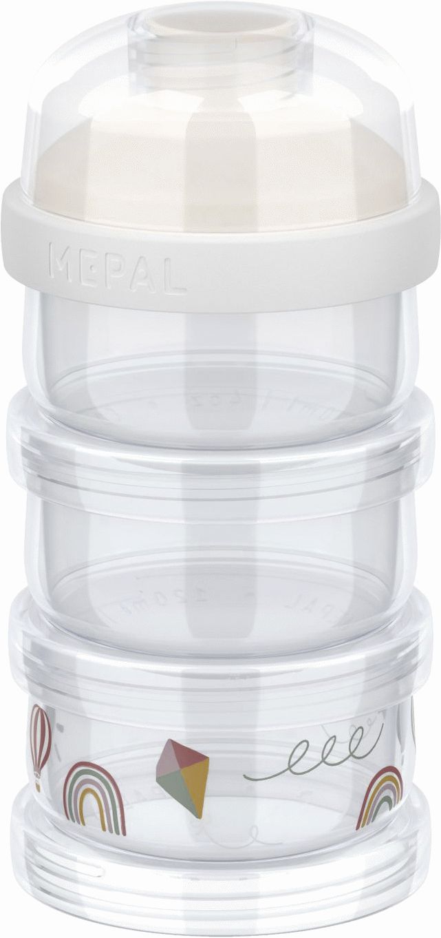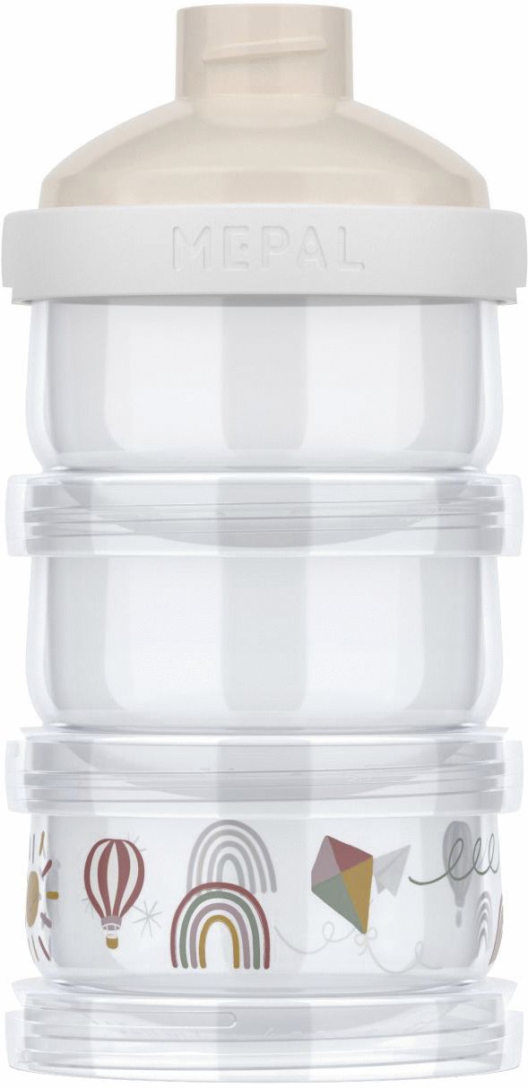 Mælkepulvertårnet fra Mepal Mio revolutionerer måden, du transporterer og doserer mælkepulver på, når du er på farten med din lille. Dette gennemtænkte system består af tre stabelbare beholdere, der hver rummer 120 ml, og gør det både praktisk og hygiejnisk at have den rette mængde mælkepulver klar til enhver situation.Det tredelte design sikrer, at du altid har præcis den mængde mælkepulver, du har brug for, organiseret i separate rum. Hver beholder lukkes individuelt med et solidt skruelåg, mens toppen er udstyret med en lufttæt forsegling, der holder indholdet friskt og beskyttet mod fugt. Den smarte hældetud gør det utrolig let at hælde mælkepulveret direkte i flasken uden spild - en funktion, der er uvurderlig, når du skal tilberede mad til din baby undervejs.