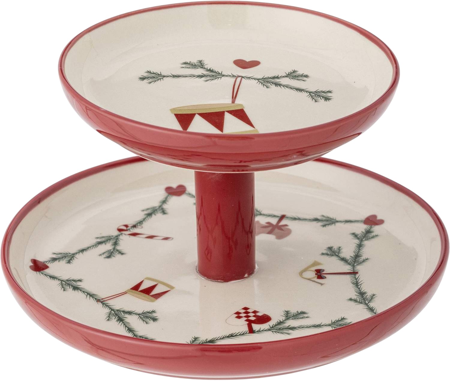 Etageren præsenterer klassiske julemotiver i en harmonisk farvepalet af varme røde og grønne nuancer, som skaber en hyggelig og traditionel juleatmosfære. Det gennemtænkte design gør den til en alsidig løsning, der fungerer lige så godt som serveringsstykke til hjemmebagte småkager og konfekt som dekorativt midtpunkt på julebordet.