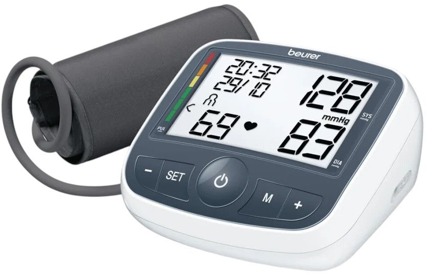 Beurer BM 40 Blodtryks- og Pulsmåler giver præcis overvågning af dit helbred i hjemmet med et brugervenligt design, der kombinerer nøjagtighed og komfort. Denne avancerede blodtryksmåler til overarmen er udstyret med et stort baggrundsbelyst display, der sikrer nem aflæsning af dine måleresultater, selv under dårlige lysforhold.Den fuldautomatiske måler er designet med fokus på sundhedsovervågning og sikkerhed. Med den indbyggede arytmi-detektor advares du omgående, hvis der registreres uregelmæssig hjerterytme under målingen, hvilket kan være et vigtigt signal til at kontakte sundhedspersonale.