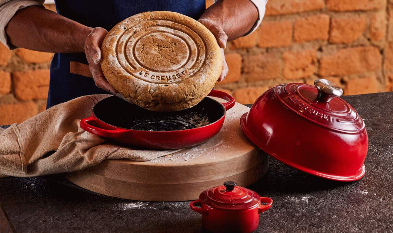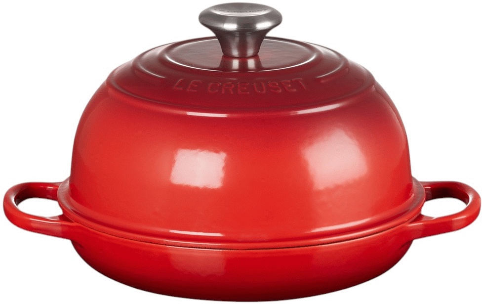 Brødformens gennemtænkte design med det hvælvede låg skaber et perfekt mikromiljø for dit brød. Under bagningen opfanges og cirkuleres dampen, hvilket sikrer optimal hævning og udvikler en dybde af smag, som er svær at opnå med konventionelle bagemetoder. Den specielt designede lavprofilerede bund sørger for, at varmen fordeles jævnt, hvilket resulterer i en perfekt gylden og sprød skorpe med Le Creusets karakteristiske tre ringe som signatur.