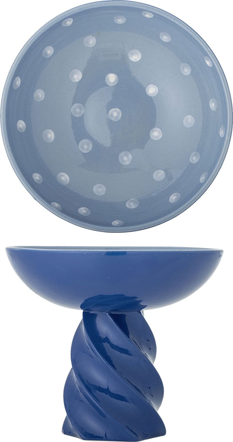 Riley Opsatsen fra Bloomingville forener klassisk elegance med moderne funktionalitet i et design, der tilfører personlighed til ethvert bord. Med sin karakteristiske blanke blå yderside og snoede fod skaber denne opsats en smuk kontrast mellem det traditionelle og det moderne. Den lyse inderside er diskret dekoreret med små prikker, som tilføjer et charmerende detaljeniveau uden at overskygge det samlede udtryk.Opsatsen er fremstillet i robust stentøj, et materiale der kombinerer holdbarhed med æstetisk appel. Den håndmalede finish betyder, at hver enkelt opsats bærer præg af håndværkets kunst, hvor små variationer i mønster og farveintensitet gør dit eksemplar helt unikt. Dette giver produktet en autenticitet og karakter, som masseproducerede varer ikke kan tilbyde.