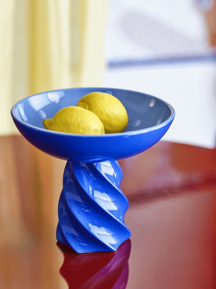 Med en diameter på 24,5 cm og en højde på 22 cm er Riley Opsatsen ideel til at præsentere kager, desserter eller frugt på en elegant måde. Den snoede fod giver opsatsen et skulpturelt udtryk, der gør den til et dekorativt element i sig selv – også når den ikke er i brug. Den blanke blå farve fungerer som et stilfuldt statement, der let kan kombineres med både neutrale og farverige bordopsætninger.