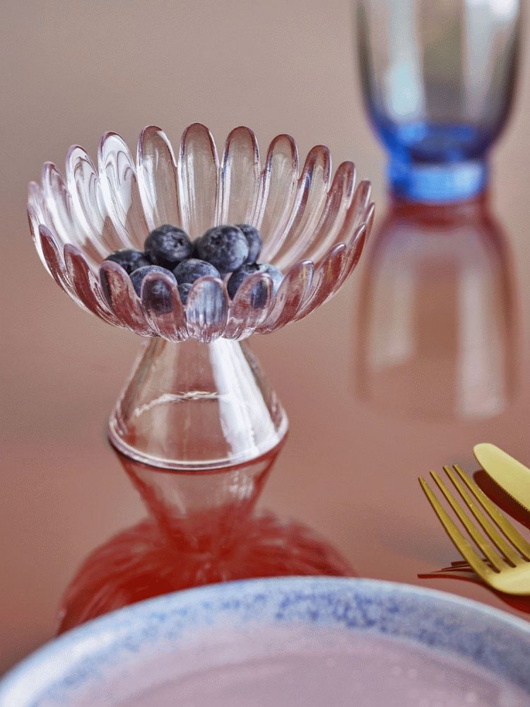 Nalu Opsatsen fra Bloomingville kombinerer funktionalitet med skulpturel skønhed i et design, der fanger blikket. Med sine bølgede kanter og blomsterlignende silhuet skaber denne glasopsats en poetisk stemning på ethvert bord eller skænk.Den spraymaling i en blød rosa nuance giver opsatsen et moderne udtryk, mens den teksturerede overflade tilføjer en ekstra dimension af dybde og karakter. Det let gennemsigtige glas skaber et smukt samspil mellem lys og farve, der varierer gennem dagen og tilpasser sig rummets skiftende lysforhold.