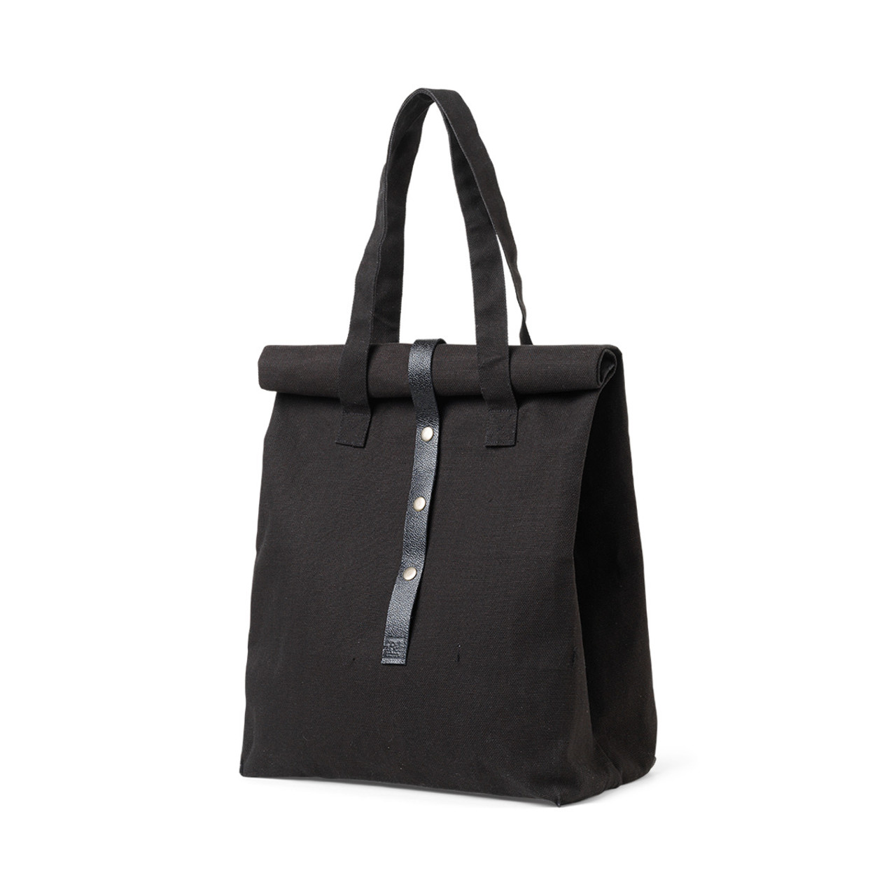 Lækker, stor picnictaske fra JUNA. Picnictasken er sort og lavet i 100% bomuld for et naturligt og råt look. Den er lavet i 100% bomuld med robuste hanke og en lukkestrop i kernelæder, der bruges til at lukke tasken, når åbningen er rullet sammen. Picnictasken er diskret med simple detaljer og har plads til alt, hvad du har brug for at have med på picnic lige fra tallerkener, flasker, bestik og flasker.Serie:Rå