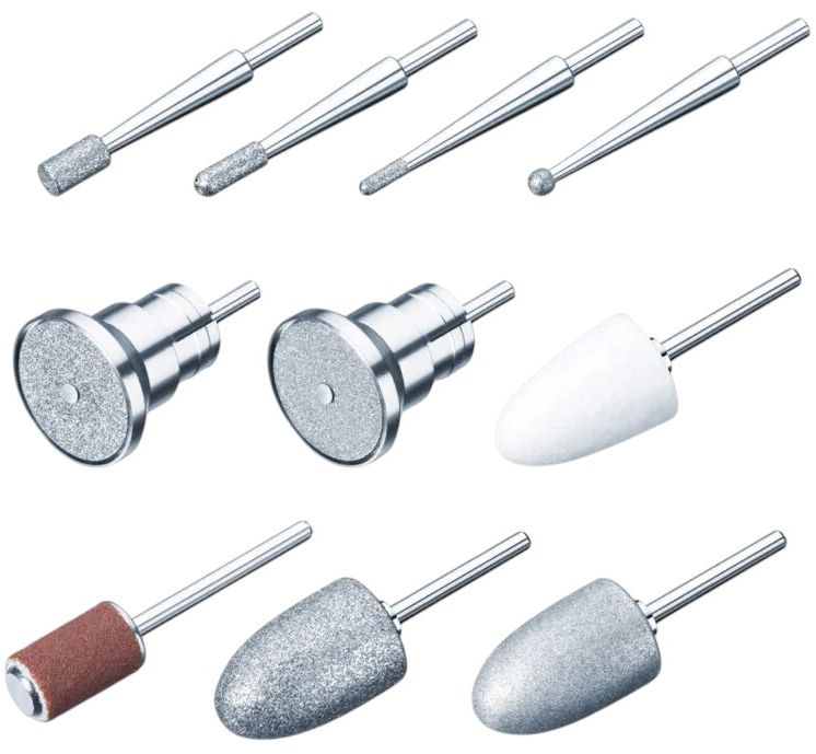 Tilbehørssættet er sammensat af kvalitetskomponenter, der dækker alle aspekter af både manicure og pedicure. De forskellige safirbelagte hoveder sikrer holdbarhed og effektivitet, mens specialværktøjerne giver dig mulighed for at arbejde med præcision selv på vanskeligt tilgængelige områder.