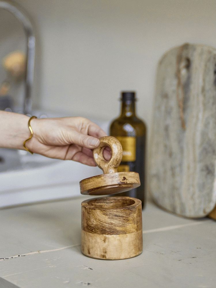 - Opbevaringskrukke i mangotræ med lakeret overflade