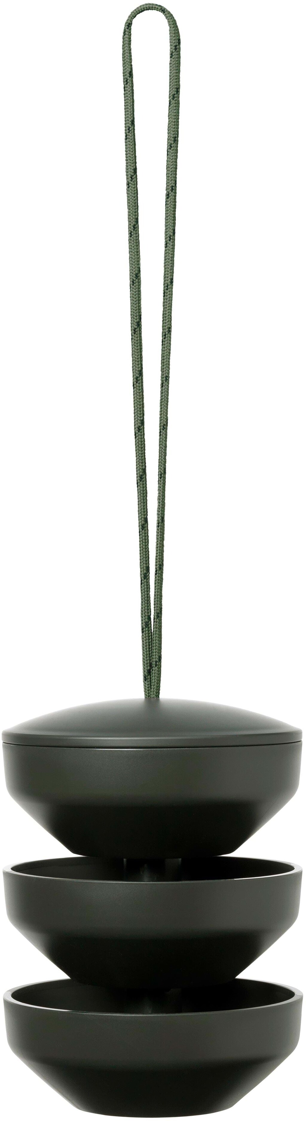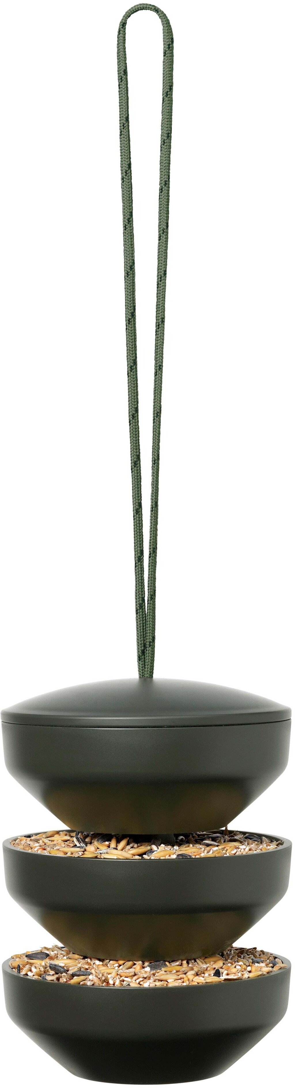 Rosendahl Birds skaber liv og fuglesang i haven, byd vinterens småfugle velkommen med god grøn samvittighed. Birds Foderstation tilbyder overdådig fodring i flere etager, den kan nemt påfyldes fra toppen, hvorfra frøene drysser ned igennem etagerne. Den er skabt i en afdæmpet farveskala, så den falder godt ind i havens naturlige miljø. Der er indbygget drænhul i bunden så regnvand løber fra og den er brud- og frostsikker. Rosendahl REDUCE er produkter skabt med ambitionen om at gøre ansvarligt produceret design tilgængeligt for alle. Birds er fremstillet i Danmark af genbrugsplast indsamlet fra danske husholdninger, forarbejdet og produceret i Danmark. Der findes flere produkter i serien, her ses Foderstation hængende.