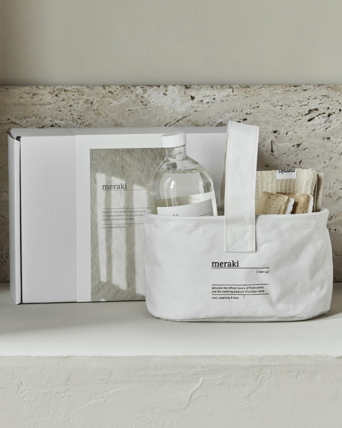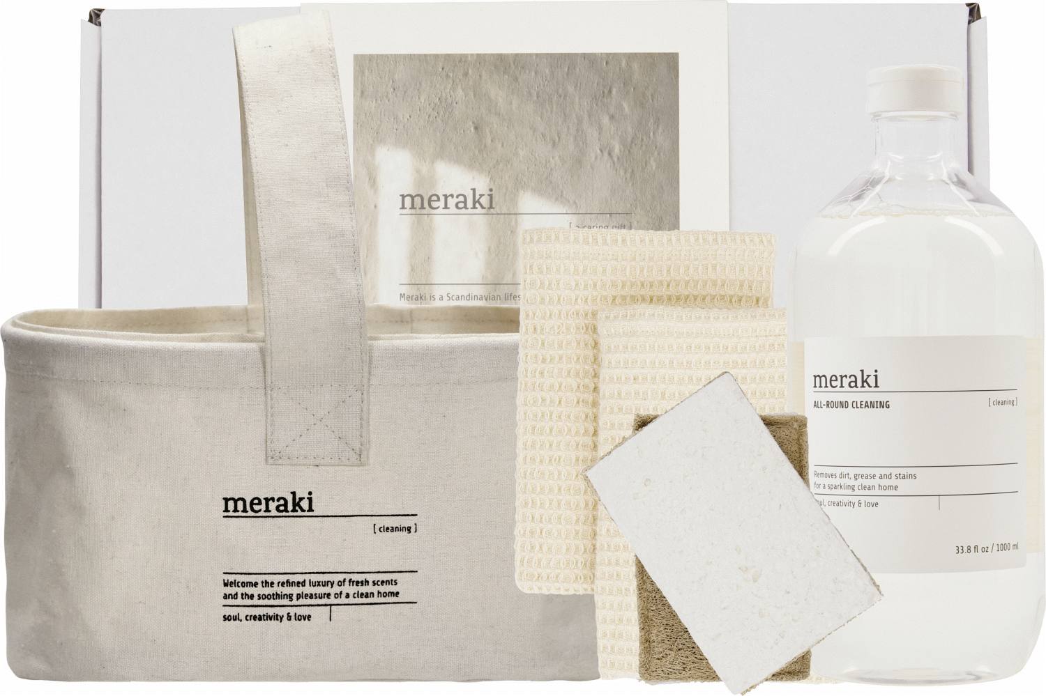 Gør hverdagens rengøring til en mere behagelig oplevelse med dette gennemtænkte sæt fra Meraki. Gaveæsken indeholder alle de nødvendige redskaber til at holde hjemmet rent og velplejet, samlet i en praktisk kurv der sikrer god organisering og nem opbevaring.Dette omfattende rengøringssæt er designet med både funktionalitet og brugervenlighed i tankerne. Kurven fungerer som det perfekte opbevaringssted for alle produkterne, så du altid har dine rengøringsartikler samlet ét sted. Det gør det nemt at transportere sættet rundt i hjemmet, mens du gør rent, og sikrer at alt er ved hånden når du har brug for det.