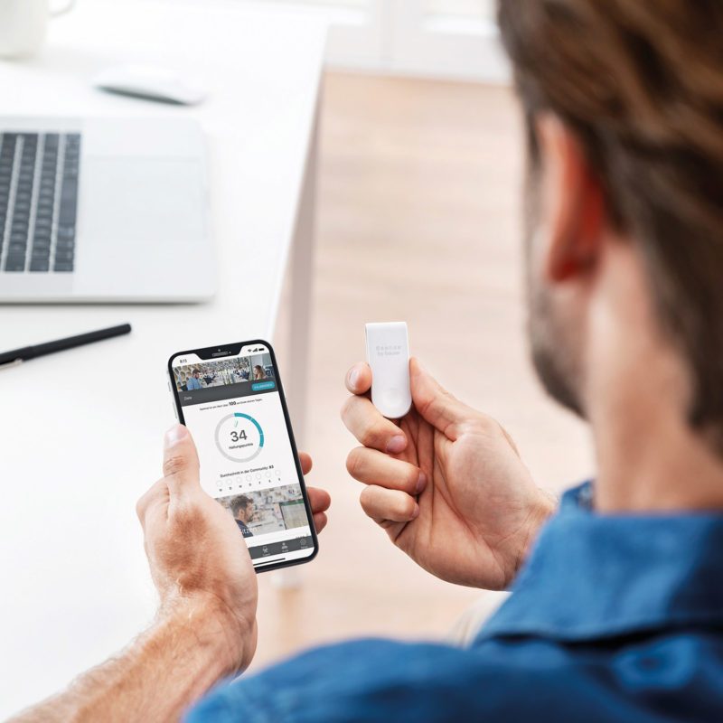 PC 100 PostureControl registrerer præcist dine bevægelser og kropsstillinger. Når den opdager uhensigtsmæssige stillinger eller for lang tid i samme position, advarer den dig med diskrete vibrationer og sender notifikationer til din smartphone. Dette øger din bevidsthed om din kropsholdning og hjælper dig til at udvikle sundere vaner.