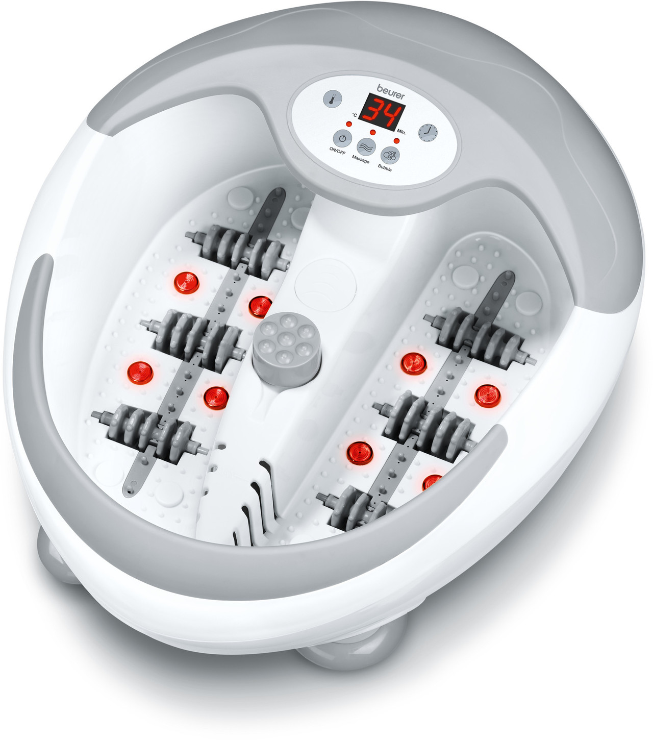 - Tre forskellige massagefunktioner: bobler, vibration og massageruller