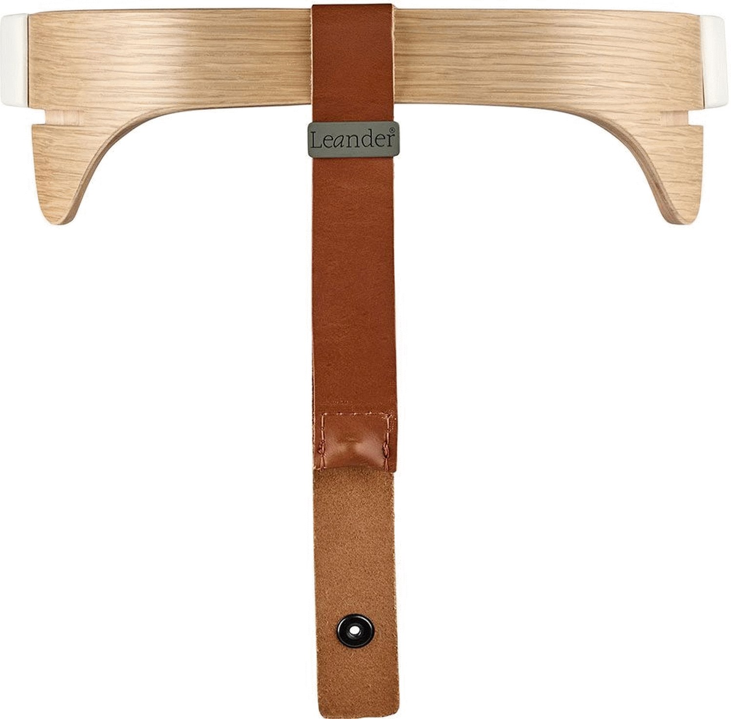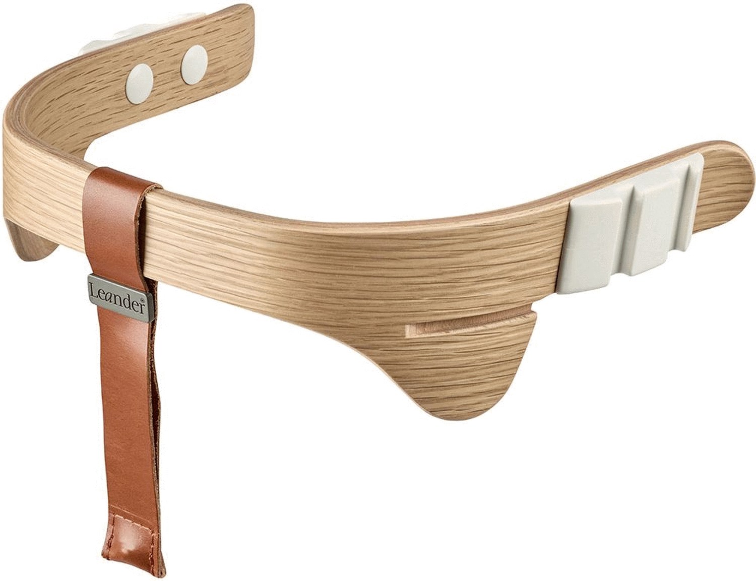 Leander Bøjle til Højstol i eg er designet til at give dit barn den ekstra støtte og sikkerhed, der er nødvendig i de første måneder ved spisebordet. Når dit barn begynder at kunne sidde selv, men stadig har brug for støtte, er denne sikkerhedsbøjle den ideelle løsning til jeres Leander højstol.Bøjlen er fremstillet i formspændt bøgetræ med et elegant finish i eg, der matcher højstolens nordiske design. Det naturlige træ giver stolen et tidløst udtryk, der passer ind i ethvert moderne hjem. Kombinationen af træ og kærnelæder skaber en harmonisk balance mellem funktionalitet og æstetik.
