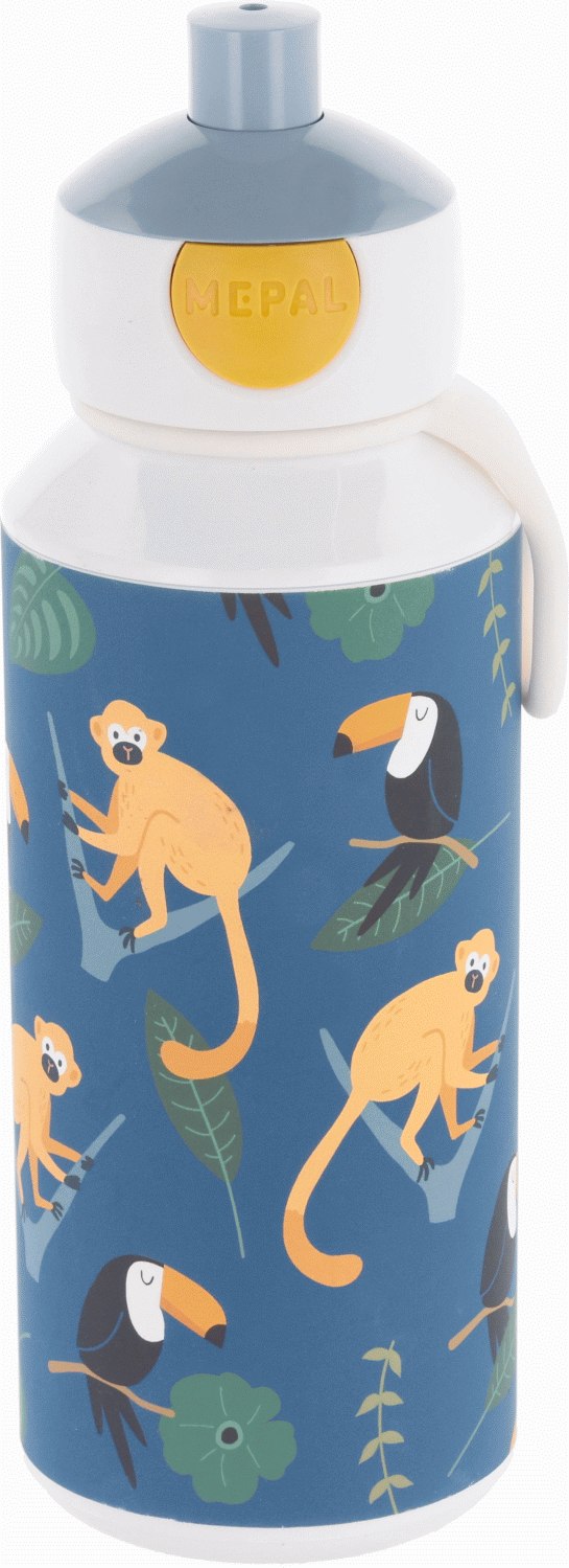 Mepal Pop-up Campus Drikkeflaske - den perfekte tørstslukkende følgesvend til aktive børn. Denne 400 ml drikkeflaske i Jungle-design forener praktisk funktionalitet med farverig æstetik, der appellerer til børns fantasi og eventyrlyst.Drikkeflaske fra Mepal har gennem generationer været et pålideligt valg for forældre, der ønsker holdbare og gennemtænkte produkter til deres børns skolehverdag. Den robuste konstruktion i slagfast ABS-materiale sikrer, at flasken kan modstå hverdagens stød og fald, mens det innovative pop-up system gør det legende let for selv små hænder at betjene flasken.