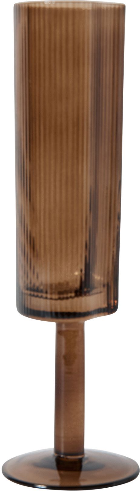 Muubs Ripe Champagneglas bringer raffineret elegance til dine festlige øjeblikke med sin karakteristiske røgede farvetone og mundblæste kvalitet. Dette smukke champagneglas er en del af den populære Ripe serie, der udmærker sig ved sit riflet glasdesign og organiske formsprog, som bryder med traditionelle borddækninger og tilføjer et moderne twist til enhver anledning.Det røgede glas skaber en varm og indbydende atmosfære, der gør hver skål til noget særligt. Champagneglassets elegante proportioner og gennemtænkte design gør det perfekt til både nytårsskålen og hyggelige sommeraftener på terrassen. Den organiske form ligger behageligt i hånden og fremhæver champagnens bobler på den smukkeste måde.