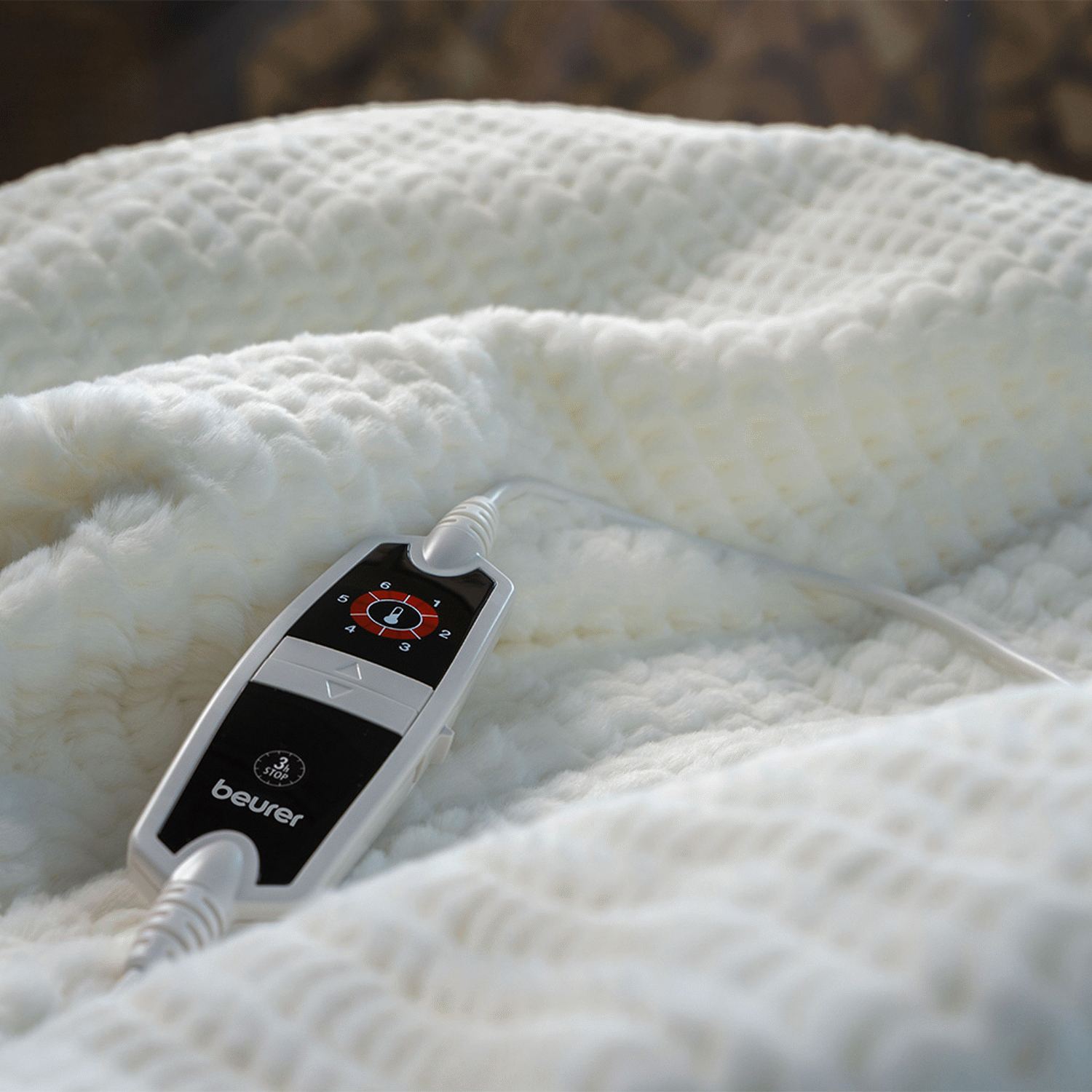 Sikkerhed er en topprioritet med det integrerede Beurer sikkerhedssystem (BSS), der inkluderer overophedningsbeskyttelse og automatisk slukning efter tre timer. Den aftagelige betjeningsenhed gør det enkelt at justere indstillingerne, selv når du er godt indsvøbet i plaiden.