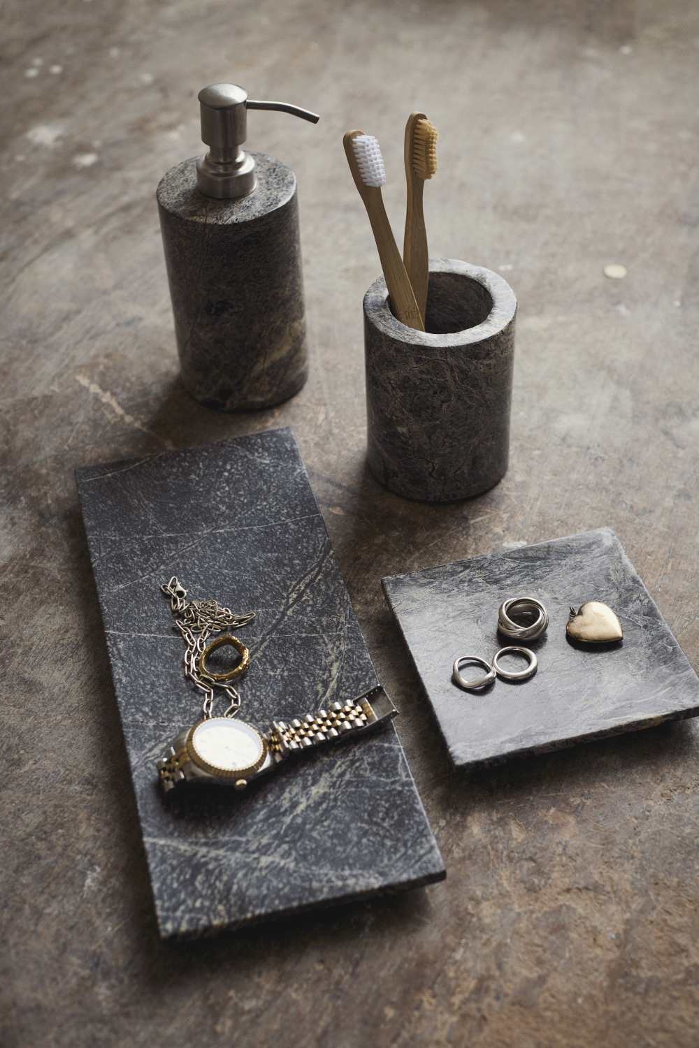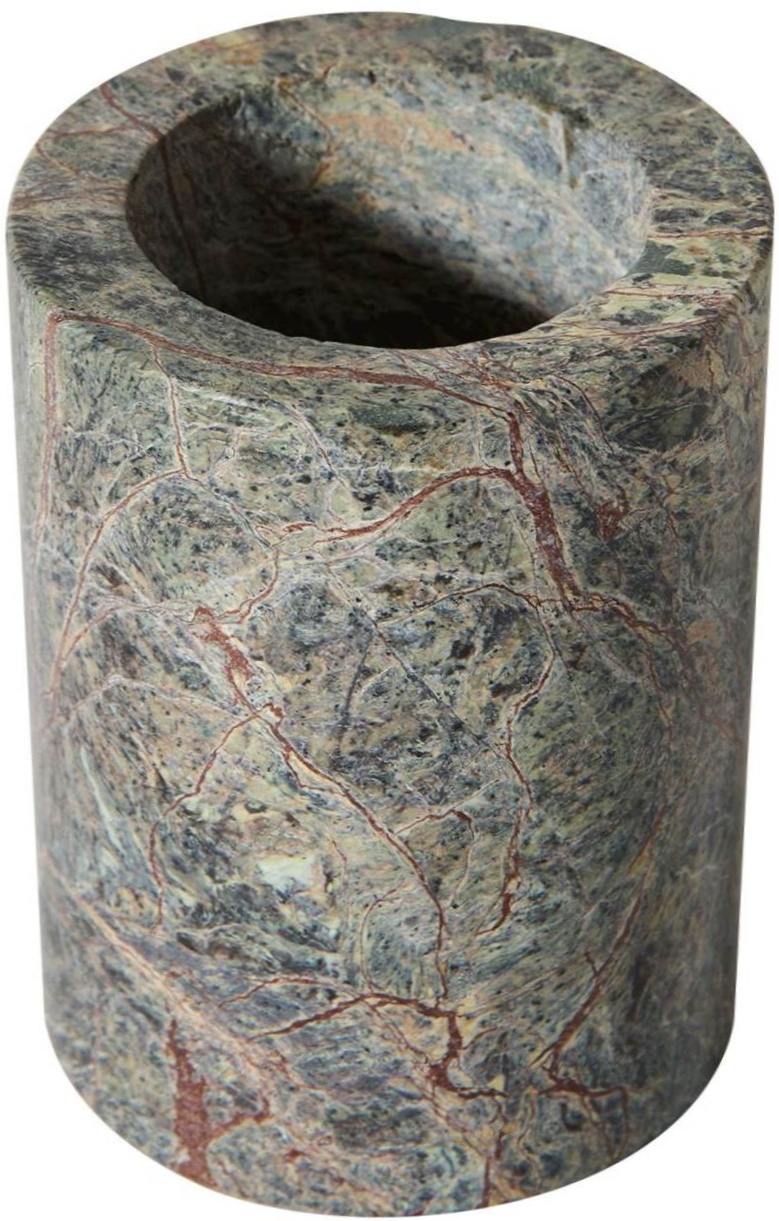 Vita tandbørstekrus i grønt marmor bringer naturens elegante skønhed ind i dit badeværelse med sin tidløse og raffinerede udstråling. Dette eksklusive stykke boligtilbehør fra Muubs' Vita-serie forener funktionalitet med æstetisk perfektion, hvor hvert krus er unikt takket være marmorets naturlige variationer i farver og mønstre.Det stilfulde tandbørstekrus er skabt af eksklusivt grønt marmor, der tilføjer en robust og elegant dimension til enhver indretning. Marmorets naturlige karakteristika sikrer, at dit Vita tandbørstekrus bliver et enestående kunstværk, der skaber smukke kontraster til andre materialer i rummet. Den grønne nuance fremhæver marmorets naturlige skønhed og giver en sofistikeret følelse til badeværelset.