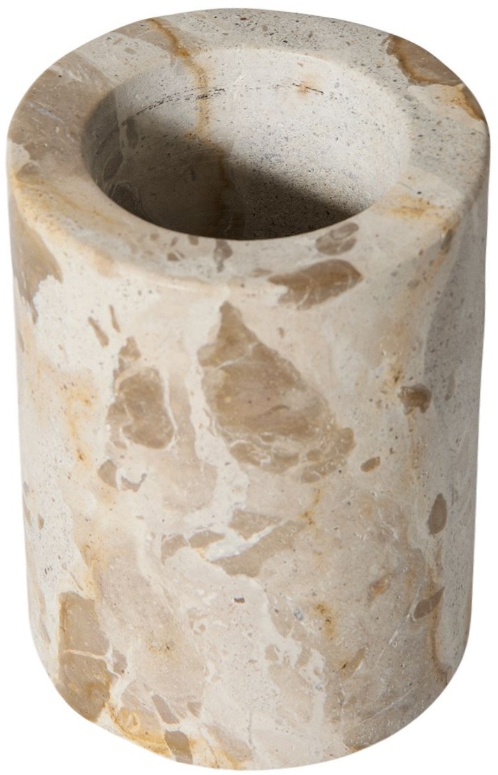 Krusset er fremstillet af ægte marmor, hvor hver naturlige variation i farver og mønstre gør dit Vita tandbørstekrus helt unikt. Den cremefarvede overflade skaber en smuk kontrast til andre materialer og tilføjer et sofistikeret touch til enhver indretning. Med sine kompakte mål på 10 cm i højden og 7,5 cm i diameter passer det perfekt på både små og store badeværelser.