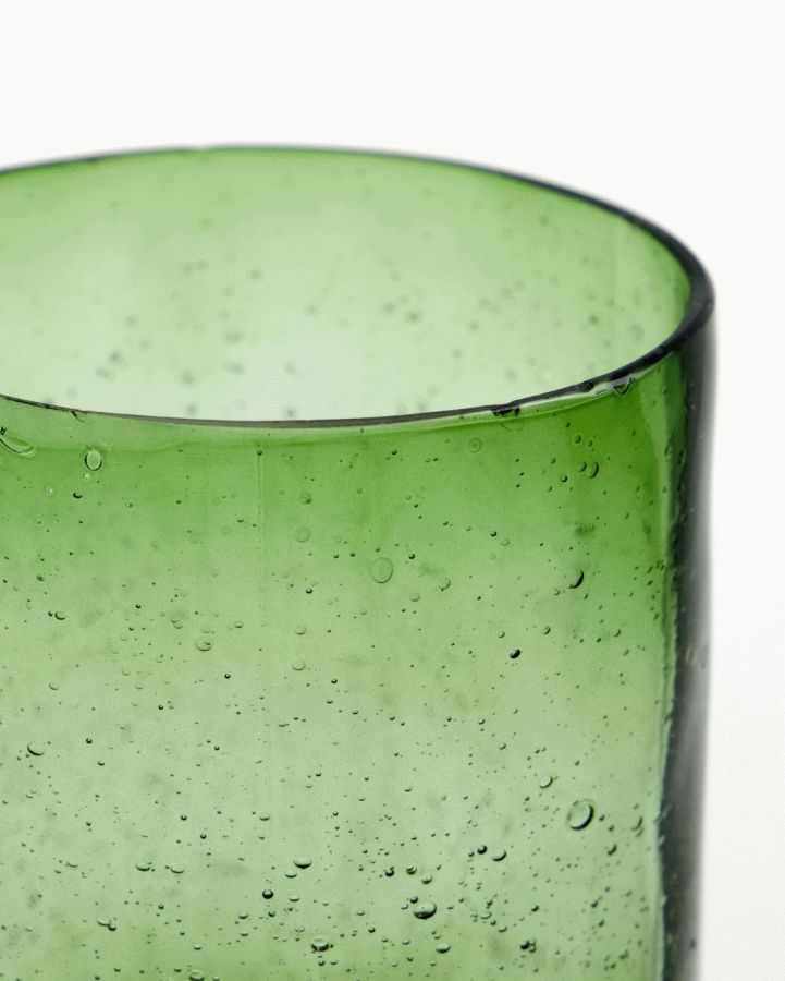 - Fremstillet i grønt glas med organisk, ujævn overflade