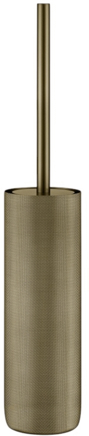 Toiletbørsten er fremstillet i titaniumbelagt rustfrit stål, der giver produktet en række værdifulde egenskaber. Titaniumbelægningen sikrer høj modstandsdygtighed mod korrosion og ridser, hvilket garanterer lang levetid selv i det fugtige badeværelsesmiljø. Den riflede overflade føles behagelig under berøring og bidrager til produktets taktile kvalitet.