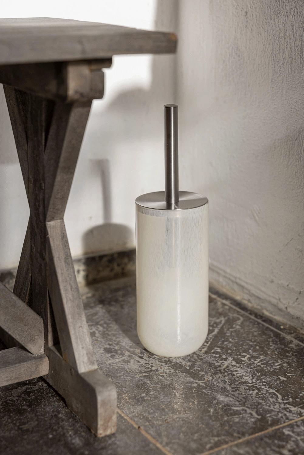 OPAL toiletbørsten i linen fuldender badeværelset med et diskret og elegant udtryk. Den afrundede form i opalglas reflekterer lyset smukt og tilfører rummet en rolig og sofistikeret atmosfære. Det børstede stålhåndtag skaber en moderne kontrast til glassets varme tone. Et funktionelt hverdagsprodukt, der falder naturligt ind i badeværelsets rolige helhed. Fremstillet i opalglas, som kendes på sin bløde transparens og subtile dybde. Materialet spreder lyset blidt og giver hvert produkt et elegant, levende udtryk.