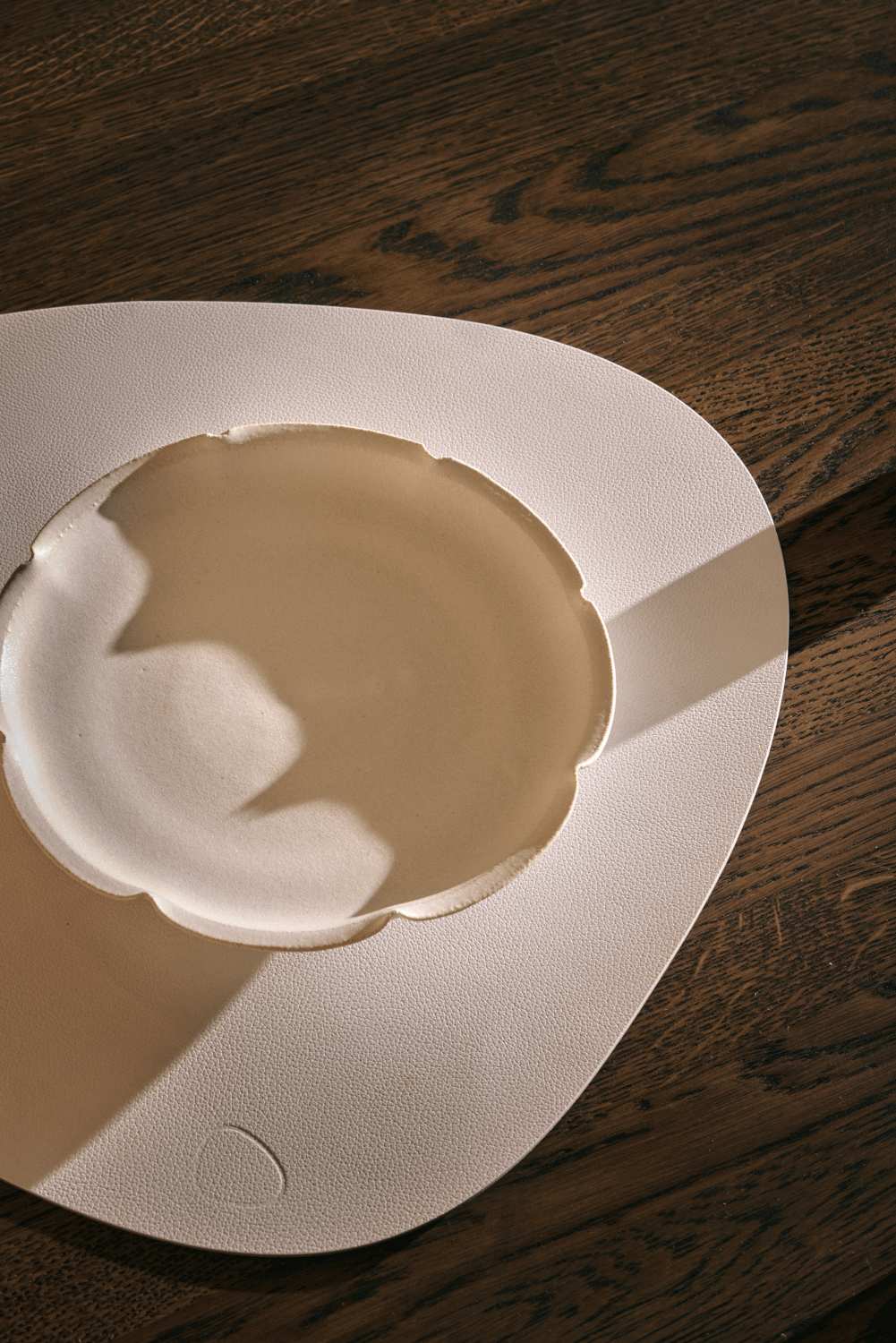 LIND DNA Curve dækkeservietten i Nupo Pure White bringer en elegant og moderne atmosfære til bordet med sit karakteristiske organiske formsprog. Den hvide nuance skaber en ren og tidløs base, der passer perfekt til både hverdagens måltider og festlige lejligheder. Det bløde læder med den fløjlsagtige overflade giver en raffineret finish, som løfter enhver borddækning.Dækkeservietten er fremstillet af OEKO-TEX® certificeret genbrugslæder, der kombinerer æstetik med praktisk funktionalitet. Materialet består af 80% genbrugslæder og 20% naturgummi, hvilket giver en robust og slidstærk overflade, der tåler daglig brug. Den glatte Nupo-tekstur er nem at rengøre – et hurtigt aftør med en fugtig klud er ofte nok til at fjerne pletter og snavs.