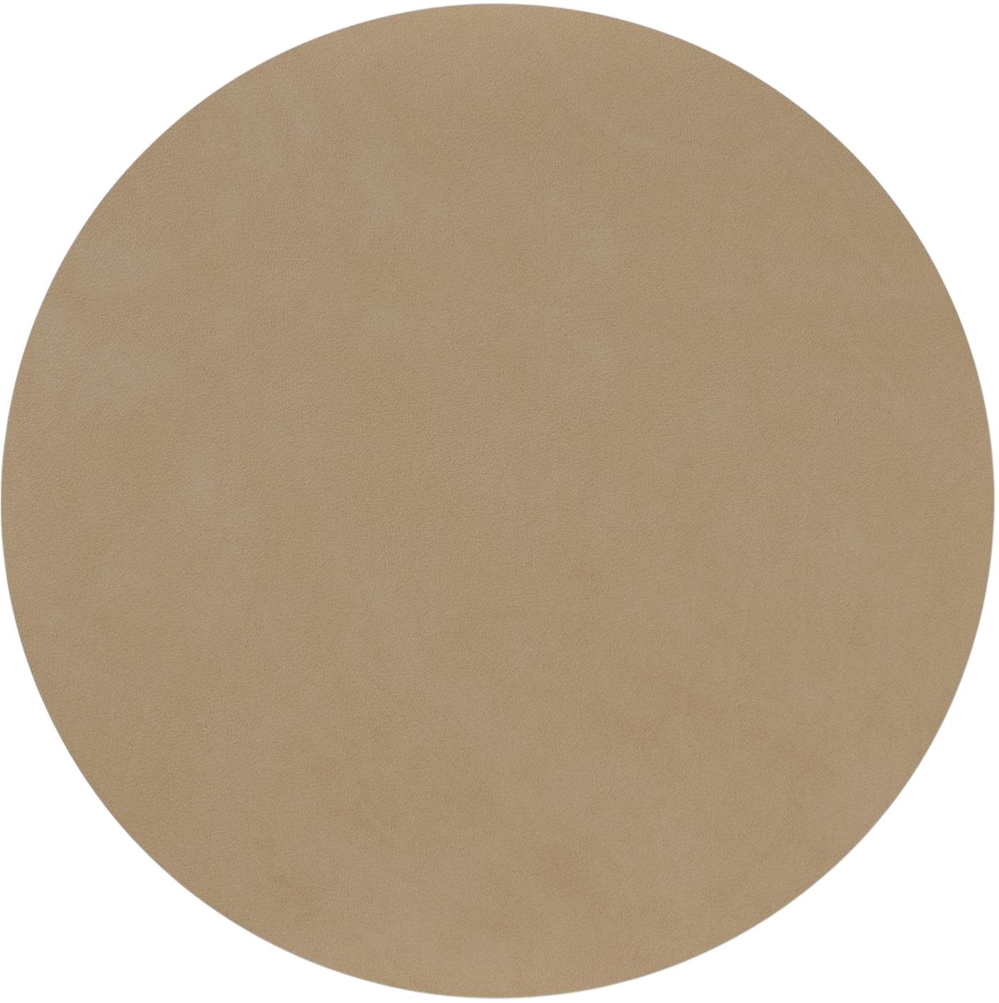 LIND DNA Circle Recycled Læder Dækkeserviet i Nupo Nougat bringer et organisk og moderne udtryk til dit spisebord med sin karakteristiske runde form og varme farvetone. Dækkeservietten er fremstillet af genbrugslæder og naturgummi, hvilket giver en unik kombination af funktionalitet og æstetik, der passer perfekt til både hverdagens måltider og festlige lejligheder.Den runde form med en diameter på 38 cm skaber en blød og indbydende atmosfære ved bordet, mens den diskrete tykkelse på 0,16 cm sikrer, at dækkeservietten ligger fladt og stabilt. Nupo-overfladen i den smukke nougat-farve tilføjer en varm og naturlig karakter, der harmonerer smukt med både moderne og klassiske borddækninger. Den lette struktur i materialet giver en behagelig haptisk oplevelse og en raffineret visuel dybde.