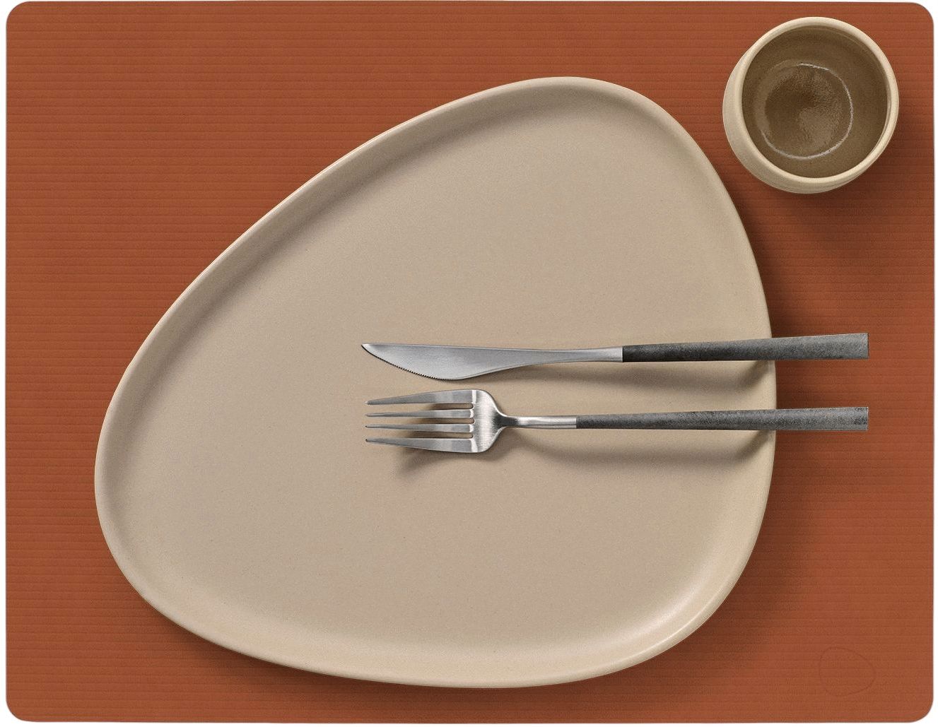 LIND DNA Square Recycled Læder Dækkeserviet i farven Corduroy Rust er en stilfuld løsning til at forny borddækningen med et organisk og moderne udtryk. Dækkeservietten kombinerer funktionalitet med et karakteristisk design, der passer perfekt til både hverdagsmad og festlige anledninger. Det strukturerede corduroy-mønster i rust-nuancen tilføjer en varm og indbydende atmosfære til bordet og skaber en harmonisk ramme om måltiderne.Dækkeservietten er fremstillet af OEKO-TEX®-certificeret materiale, der består af 80% læder og 20% naturgummi. Denne kombination sikrer en holdbar overflade, der tåler daglig brug og samtidig er nem at vedligeholde. Materialet har en behagelig haptik og en slidstærk konstruktion, som gør det ideelt til både indendørs og udendørs brug.