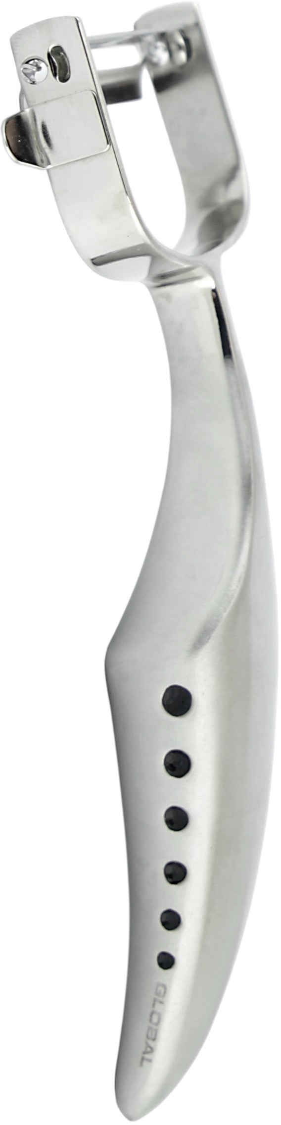 Håndtaget er forsynet med de karakteristiske sorte prikker, som er Global-seriens særlige kendetegn, og som samtidig sikrer et stabilt og sikkert greb, selv med våde hænder. Tyndskrælleren er fremstillet af ét stykke førsteklasses rustfrit stål, hvilket ikke blot giver den en elegant og tidløs æstetik, men også gør den ekstremt holdbar og modstandsdygtig over for rust og slitage.