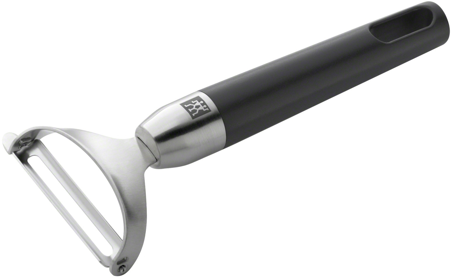 Y-skrælleren fra TWIN® Pure Black serien måler 16,5 cm og er udstyret med et skridsikkert plastskaft med ophængningsøje. Skaftet har et godt greb, hvilket gør det behageligt selv under længerevarende brug.Bladenes specielle form forhindrer mad i at sætte sig fast. Takket være bladenes fleksibilitet tilpasser de sig perfekt til enhver råvare, som skal skrælles. Skræl frugt og grøntsager hurtigt og let med denne Y-skræller fra ZWILLING og sæt den efterfølgende i opvaskemaskinen for nem rengøring.