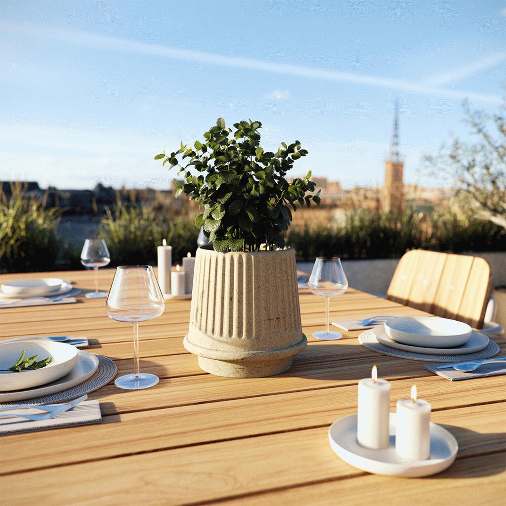 Gaia 16 urtepotteskjuler fra SACKit kombinerer klassisk inspiration med moderne funktionalitet i et design, der passer perfekt til både terrasse, altan og have. Krukken er fremstillet i keramik med en mat, riflet overflade, der skaber et smukt lysspil, når sollyset falder på den. Med sin tidløse form og naturlige finish bliver denne urtepotteskjuler et elegant element i ethvert udendørsmiljø.Designet henter inspiration fra det antikke Grækenland, hvor navnet Gaia refererer til den græske gudinde for Jorden og jordens frugtbarhed. Denne symbolik afspejles i krukkens organiske form og jordbundne æstetik, der giver en følelse af ro og harmoni i haven. Den sandfarve nuance understreger det naturlige udtryk og skaber en varm, indbydende atmosfære omkring dine planter.