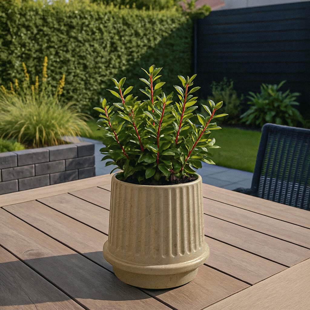 Gaia 16 er designet til dansk klima og kan tåle frost ned til –20°C, hvilket gør den ideel til helårsbrug udendørs. Krukken er udstyret med drænhul i bunden, så overskydende vand kan løbe fra og sikre optimale vækstbetingelser for dine planter. Den riflede overflade giver ikke blot et flot visuelt udtryk, men tilfører også tekstur og dybde til din udendørsindretning.