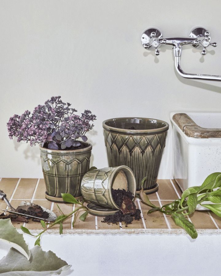 - Sæt med 3 urtepotter i forskellige størrelser (12 cm, 15 cm og 20 cm i både højde og diameter)