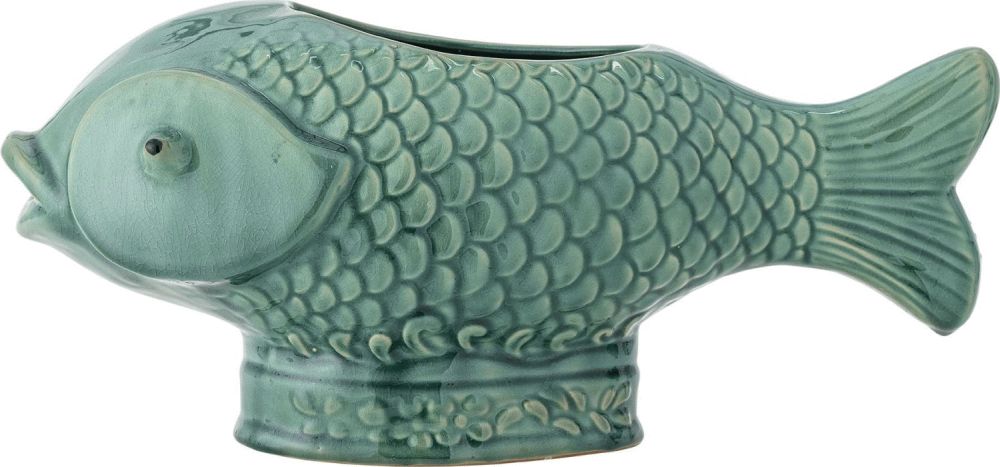Creative Collection præsenterer Hiro Urtepotteskjuler – et kunstnerisk funderet design, der forener praktisk funktion med skulpturel formgivning. Denne karakterfulde urtepotteskjuler er formet som en fisk med omhyggeligt udarbejdede skæl og finner, der giver produktet en levende og organisk udtryk. Den grønne farvetone skaber en harmonisk forbindelse til naturens palette og passer smukt ind i både moderne og klassiske indretningsstil.Fremstillet i stentøj med en reaktiv glasur opnår Hiro en unik overflade, hvor farvetone og intensitet kan variere fra stykke til stykke. Denne naturlige variation betyder, at hver urtepotteskjuler bliver et individuelt objekt med sit eget udtryk. De varme, afdæmpede nuancer giver produktet en blød og indbydende karakter, der tilføjer personlighed til ethvert rum.