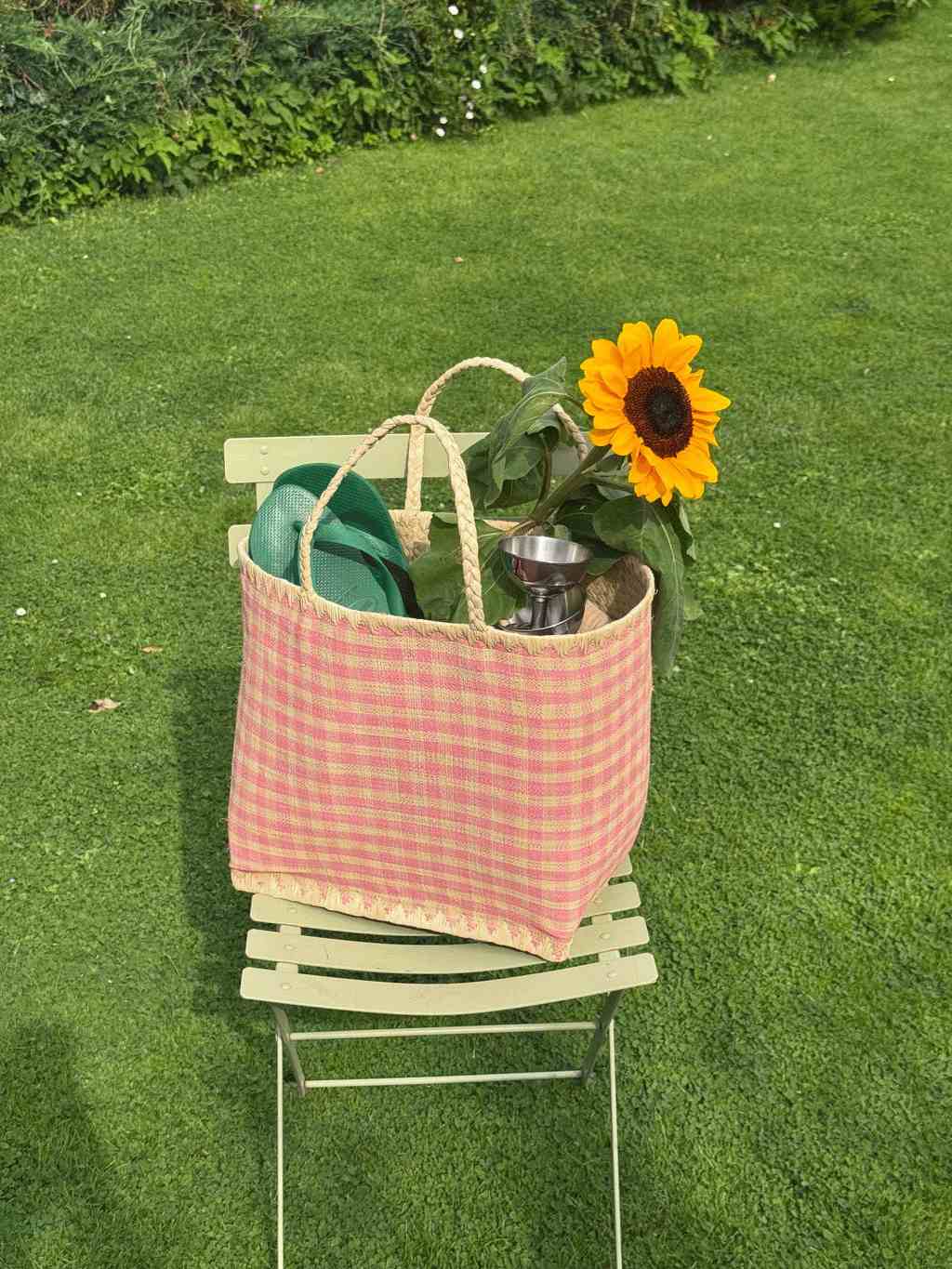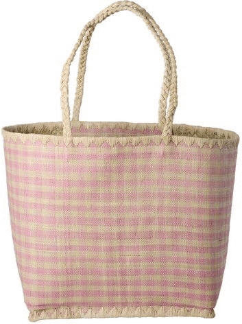 RICE præsenterer en charmerende håndlavet taske, der kombinerer praktisk funktionalitet med et indbydende design i lyserøde tern. Denne rummelige taske er fremstillet af raffia, et naturligt materiale kendt for sin styrke og fleksibilitet, hvilket gør den ideel til mange forskellige anvendelser i hverdagen.Tasken er omhyggeligt fremstillet i hånden på Madagaskar, hvor traditionelt håndværk møder moderne design. De flettede håndtag sikrer en behagelig bærekomfort, uanset om tasken er fyldt med dagligdags fornødenheder, picnicudstyr eller strandtilbehør. Det lyserøde ternmønster tilføjer et friskt og livligt præg, der gør tasken til et stilfuldt accessory, der fanger blikket.