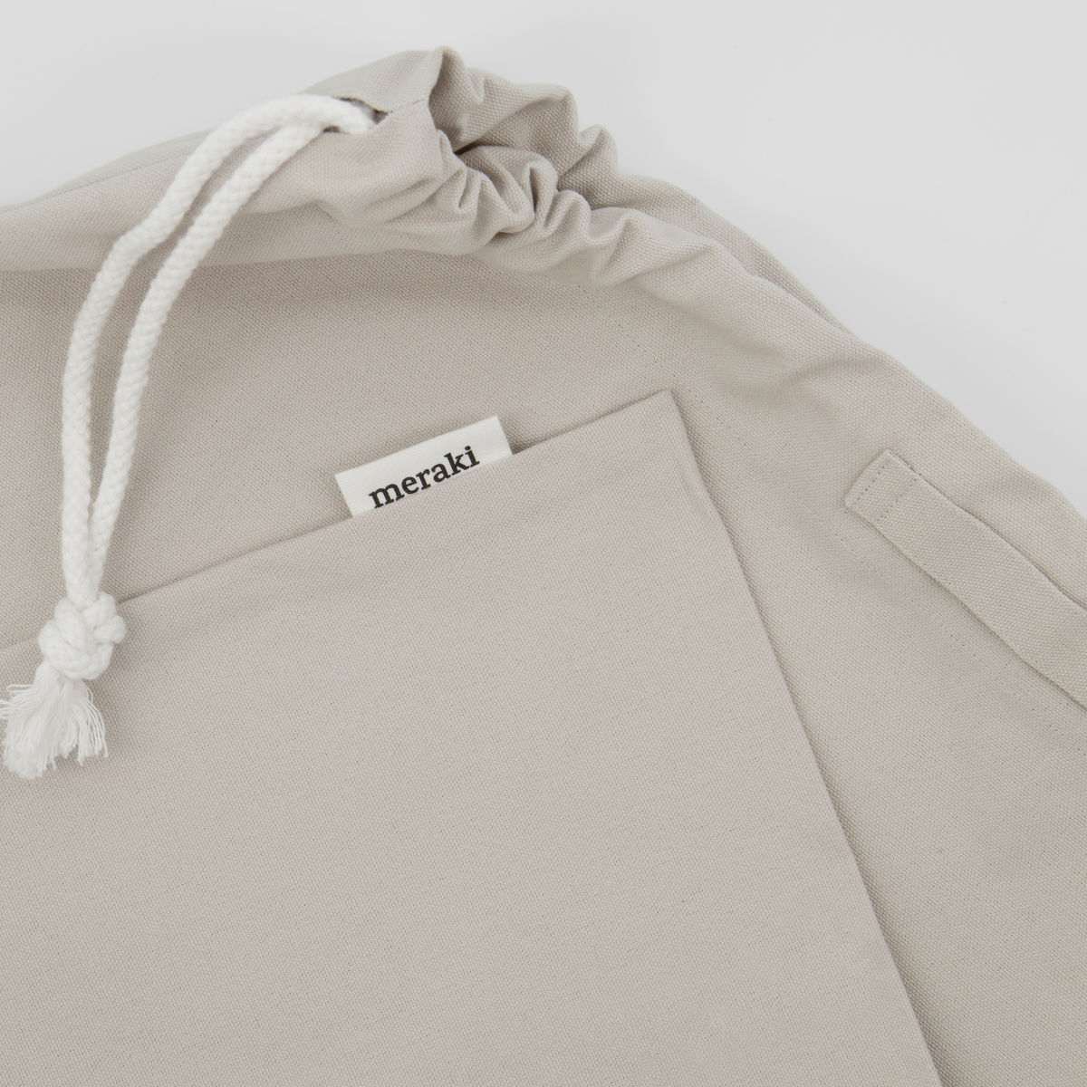 Skab orden og opbevar dine ejendele på en smart måde med Cataria bomuldsposen fra Meraki. Brug den som inderpose i din vasketøjskurv eller skab mere plads på bord og hylder ved at fylde posen med ting og hænge den på en knage. I soveværelset er posen oplagt til at opbevare tæpper eller tøj, du først skal bruge til næste sæson. Den kraftige bomuldskanvas kan holde til det meste og bidrager til udtrykket i dit hjem.