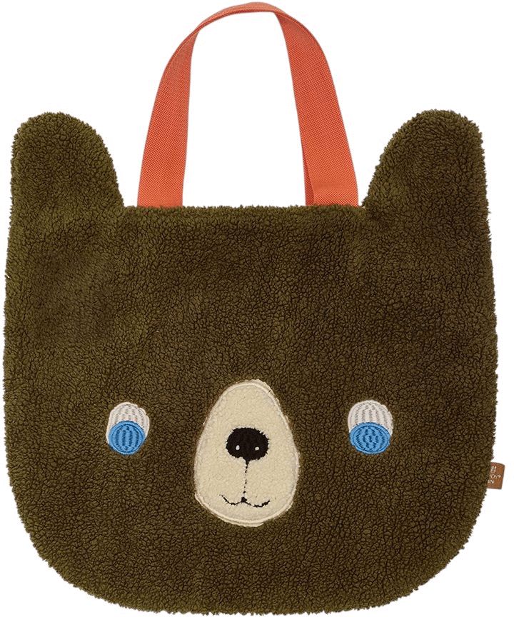 Tasken er fremstillet i blødt recycled fleece, hvilket gør den både miljøvenlig og behagelig at røre ved. Det broderede bjørneansigt giver tasken et legende og indbydende udtryk, der appellerer til børns fantasi og gør det sjovt at bruge den i dagligdagen. Det klassiske design i brun og rød harmonerer smukt med OYOY's karakteristiske skandinaviske æstetik.