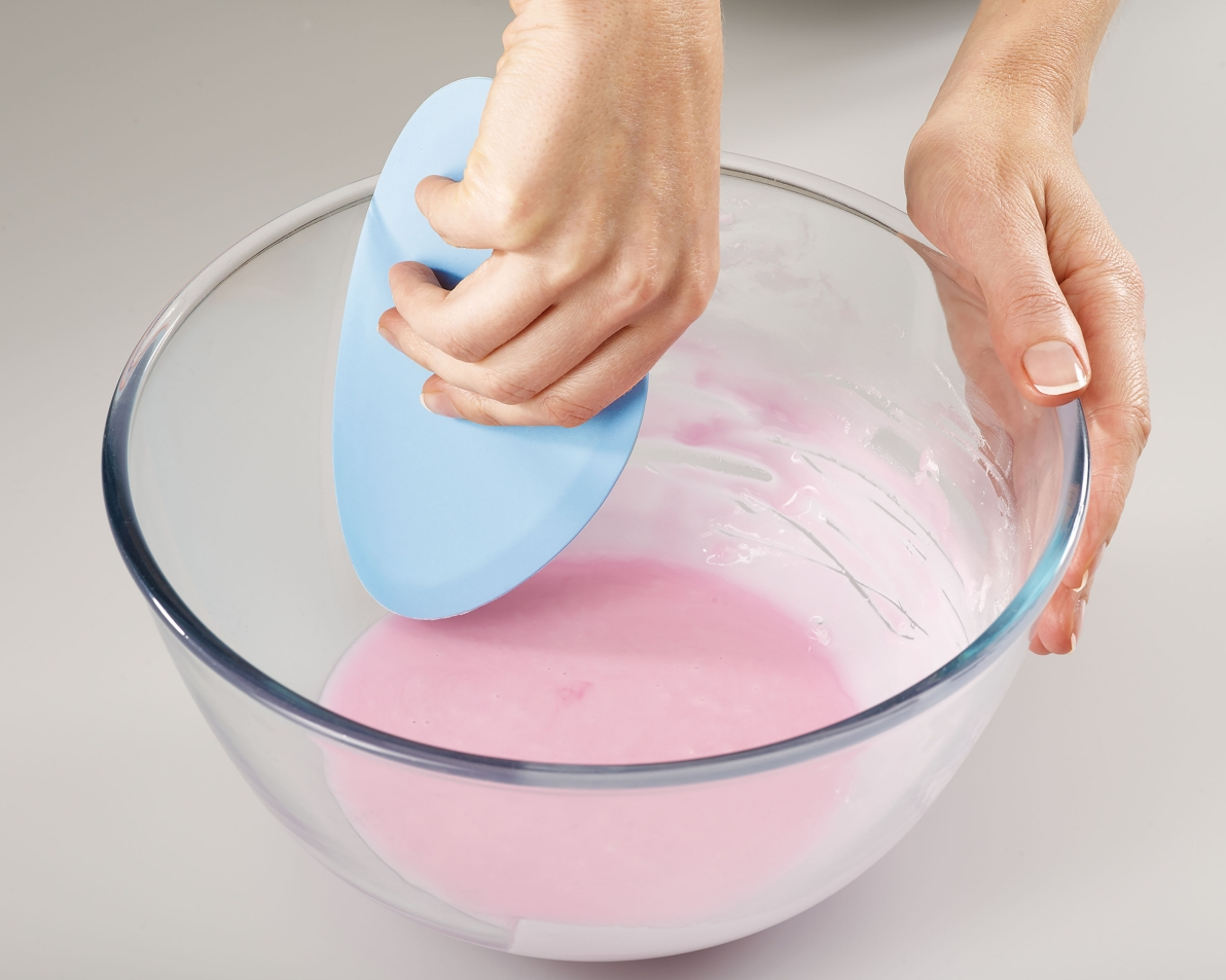 • Dejskraberens kurver er skabt til at passe perfekt til skålens sider, hvor silikonen gør den ekstra bøjelig.
