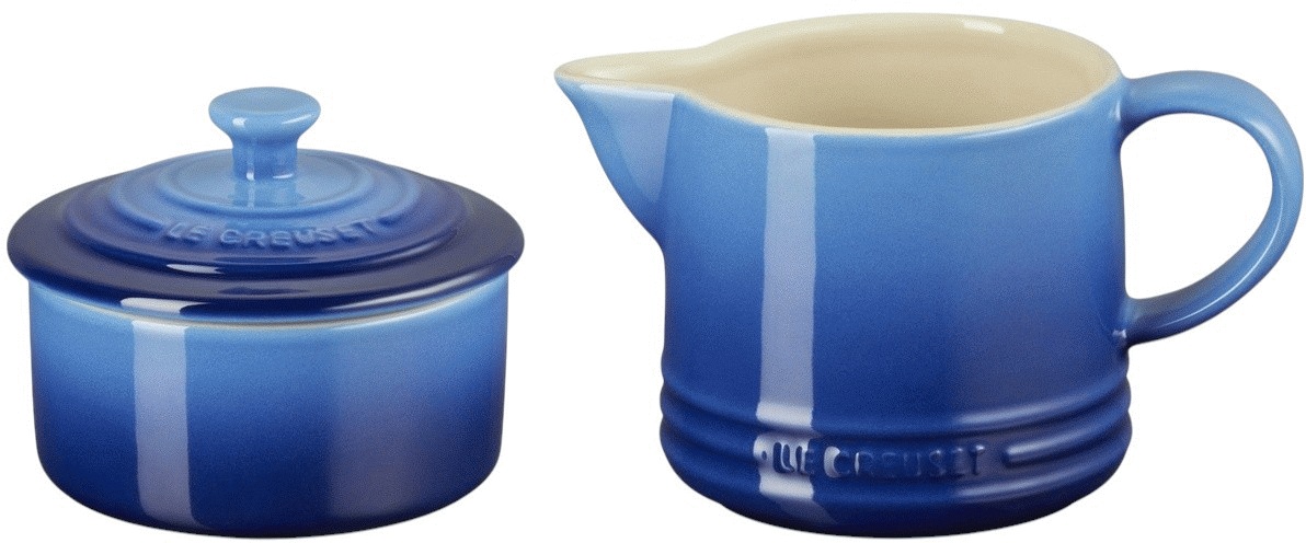 Flødekanden med sin velformede hældetud sikrer præcis servering uden dryp og spild, mens sukkerskålen holder indholdet friskt og let tilgængeligt. Begge dele er fremstillet i Le Creusets karakteristiske holdbare stentøj, der bevarer sin smukke finish år efter år.