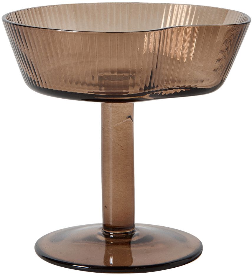 Muubs Ripe cocktailglas i røget glas bringer raffineret elegance til din borddækning med sin karakteristiske riflede overflade og organiske formgivning. Det mundblæste glas har en smuk røget farvetone, der skaber varme og dybde i designet, mens de let skrå sider og den unikke form bryder med traditionelle glasdesigns.Cocktailglasset fra Ripe serien kombinerer funktionalitet med tidløs æstetik gennem sin gennemtænkte konstruktion. Den riflede glasoverflade på ydersiden giver ikke kun et visuelt interessant udtryk, men også et behageligt greb, der føles naturligt i hånden. Med en kapacitet på 15 cl er glasset perfekt dimensioneret til cocktails, drinks eller som en elegant præsentation af portionsanrettede desserter.