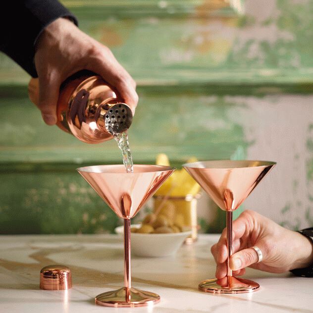 - Sæt med 2 martiniglas i kobberfarvet rustfrit stål