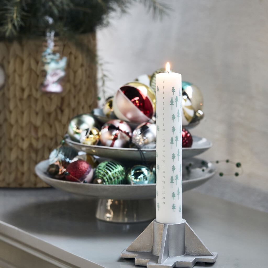 Begynd hver morgen i december med at tælle dagene frem til jul på hyggeligste vis. Dette kalenderlys fra House Doctor hedder Shine og er dekoreret med et juletræsmønster i lyseblå. Tænd lyset hver dag, mens du spiser morgenmad eller slapper af i sofaen om aftenen. Det er en juletradition, som ikke er til at komme udenom. Stil kalenderlyset i din yndlingslysestage og tilføj lidt gran og julepynt for virkelig at komme i julestemning. Før du ved af det, er det jul.Mål: