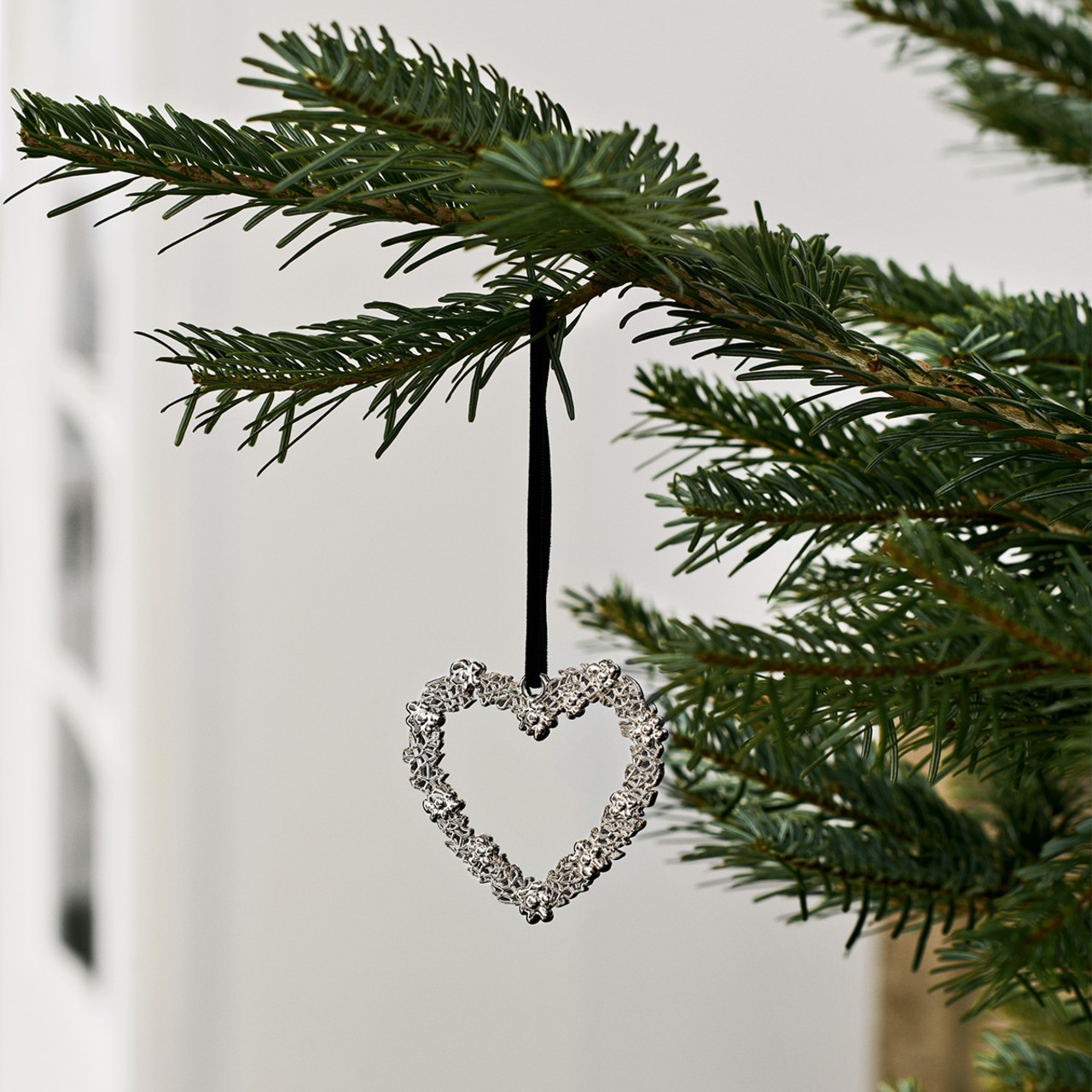Karen Blixen havde en helt særlig kærlighed for både naturen og sine nærmeste, hvilket Ole Kortzau har fortolket i en række fine ophæng til serien Karen Blixens Jul for Rosendahl. Her finder du et smukt forsølvet blomsterhjerte, som hænger perfekt som udsmykning i dine vinduer. Blomsterhjertet måler syv cm og kan derfor hænge for sig selv eller sammen med andre ting fra samme juleserie. Der vil altid medfølge et blåt og et rødt bånd, så du kan afgøre, hvilken farve du ønsker at bruge. Og så får du ophænget i en særlig gaveæske fra dette års serie af Karen Blixens Jul.Serie:Karen Blixen